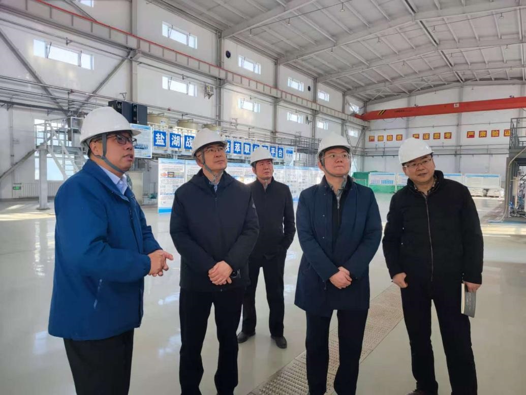 11月23日上午,中国盐湖集团党委书记、董事长薛飞,总工程师陈宋璇一行,前往青海盐湖所甘河中试基地开展实地调研。副所长冯海涛陪同调研。